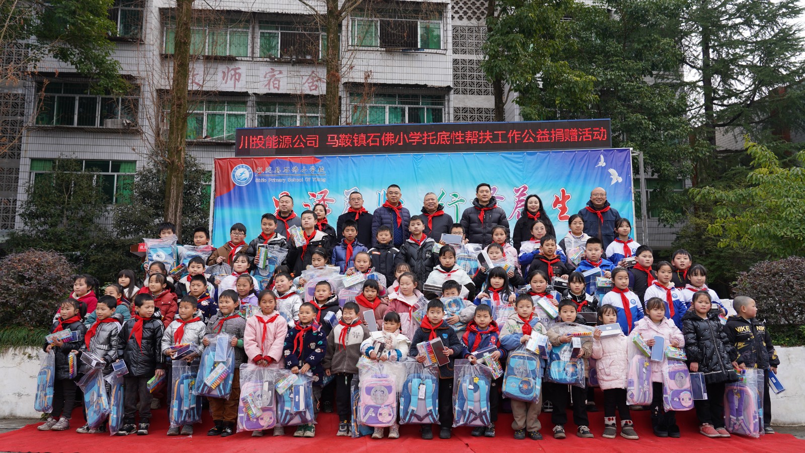 在馬鞍鎮(zhèn)石佛小學(xué),楊洪等領(lǐng)導(dǎo)為貧困學(xué)生送上體育器材、文化用具等學(xué)習(xí)生活用品,勉勵孩子們要從小樹立遠(yuǎn)大的志向,勇敢面對困難,在逆境中堅持不懈地奮斗,努力成長為德才兼?zhèn)涞膬?yōu)秀學(xué)生,以實際行動感恩家庭的養(yǎng)育之恩,回饋社會的關(guān)愛之情。