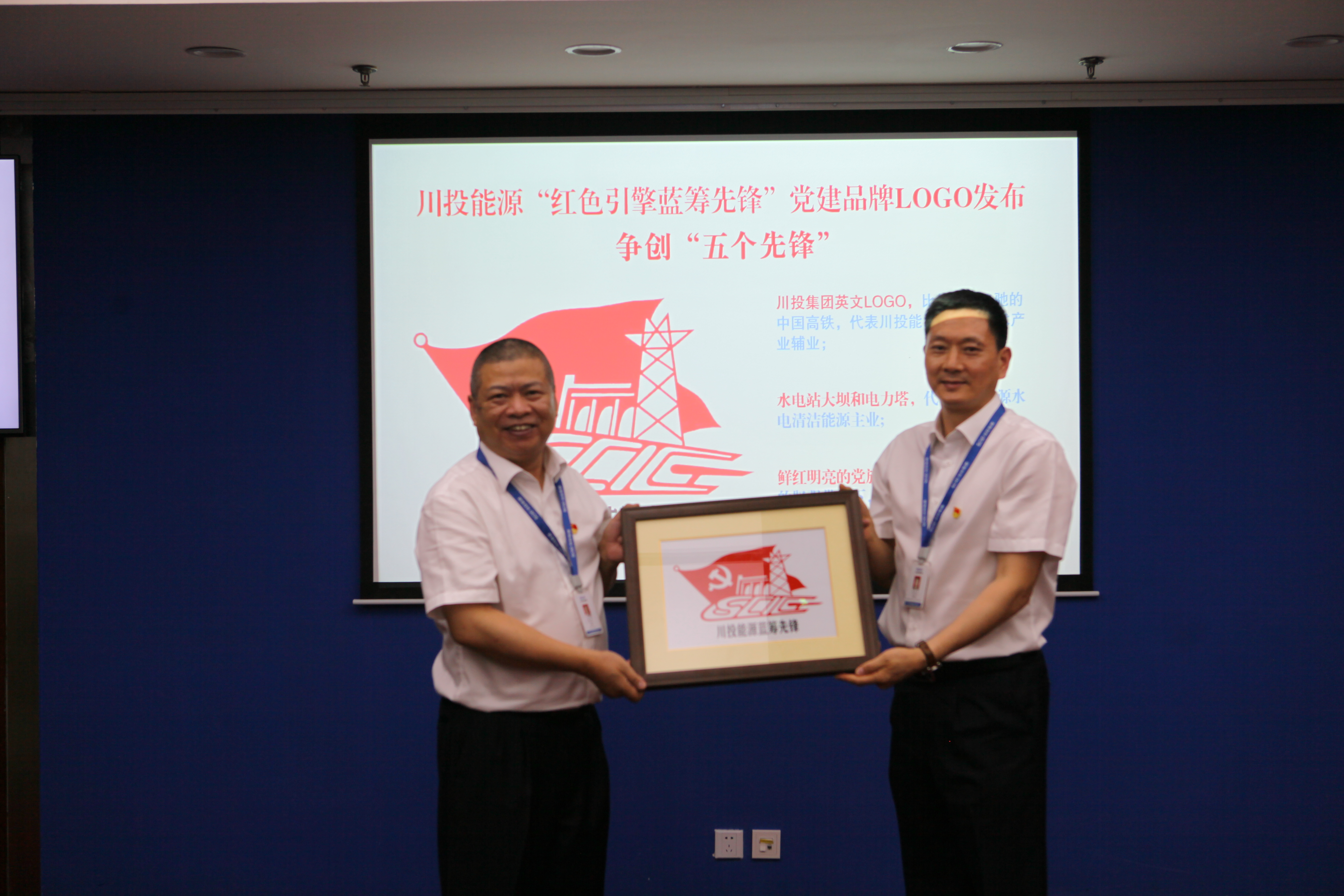 在公司黨建品牌標識發(fā)布會上,黨委書記楊洪與紀委書記冉蘭平共同為黨建品牌標識揭牌。在黨建品牌的帶動引領下,公司的黨建品牌建設已經形成了“一條主線串,各自放異彩”的良好局面。由川投能源所屬天彭電力黨員莊叢燦設計創(chuàng)作的黨建品牌標識,要素兼顧、設計新穎、要義突出,用川投集團英文LOGO,比作急速飛馳的中國高鐵,代表川投能源的高新技術產業(yè)輔業(yè);水電站大壩和電力塔,代表川投能源水電清潔能源主業(yè);鮮紅明亮的黨旗,喻作風帆,寓意在黨的堅強帶領下,川投能源乘風破浪改革前行的美好景象。