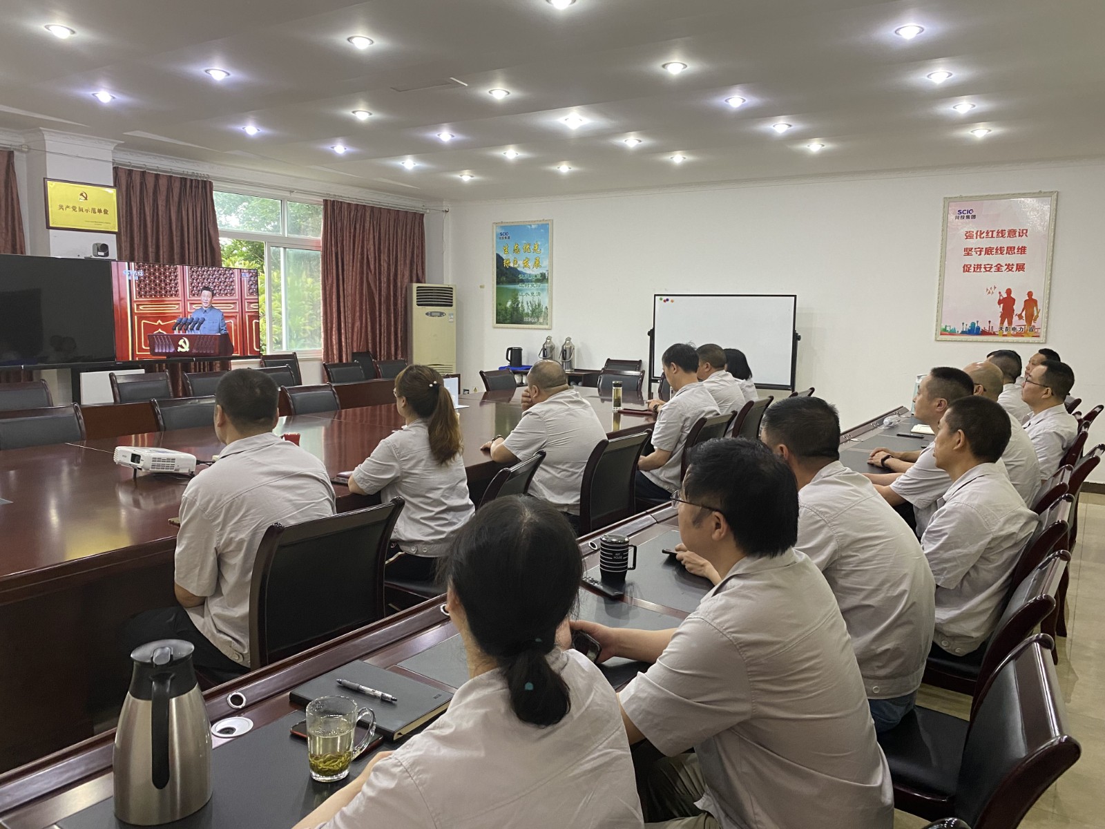 2021年7月1日上午8時(shí),慶祝中國(guó)共產(chǎn)黨成立100周年大會(huì)在北京天安門廣場(chǎng)隆重舉行。中共中央總書(shū)記、國(guó)家主席、中央軍委主席習(xí)近平發(fā)表重要講話。川投能源組織本部及下屬子公司全體黨員職工共計(jì)200余人,在各自分會(huì)場(chǎng)以視頻方式實(shí)時(shí)觀看大會(huì)。