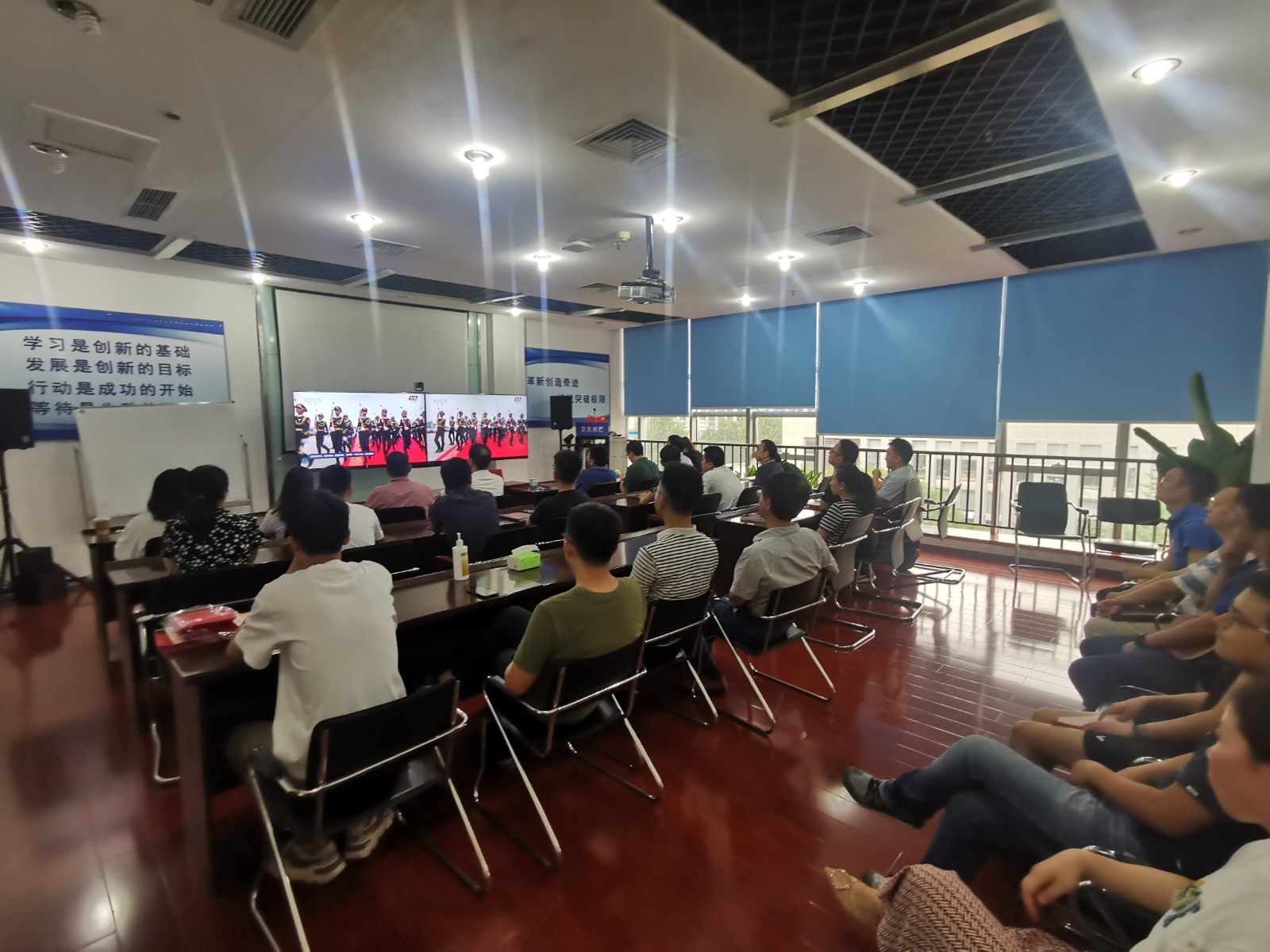 視頻中,習(xí)近平總書(shū)記鏗鏘有力的聲音深入人心,從1921到2021,中國(guó)共產(chǎn)黨帶領(lǐng)中國(guó)人民,從風(fēng)雨飄搖中一路走來(lái),百年征程波瀾壯闊,百年初心歷久彌堅(jiān)。當(dāng)《國(guó)歌》《國(guó)際歌》相繼響起的時(shí)刻,會(huì)場(chǎng)人員紛紛起立,跟隨激昂的旋律整齊高唱。當(dāng)回顧“四史”贊頌黨的偉業(yè)之時(shí),會(huì)場(chǎng)人員滿溢出對(duì)黨的感恩和身為黨員的自豪。